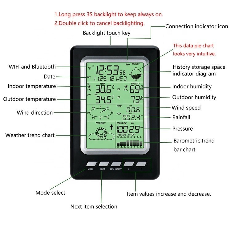 무선 WIFI와 모바일 APP로 데이터를 볼 수 있습니다.