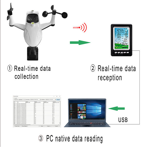 6. 연간, 월간, 그리고 매일 날씨 변화 기록을 저장하고, 보존을 위해 컴퓨터로 다운로드 할 수 있습니다.